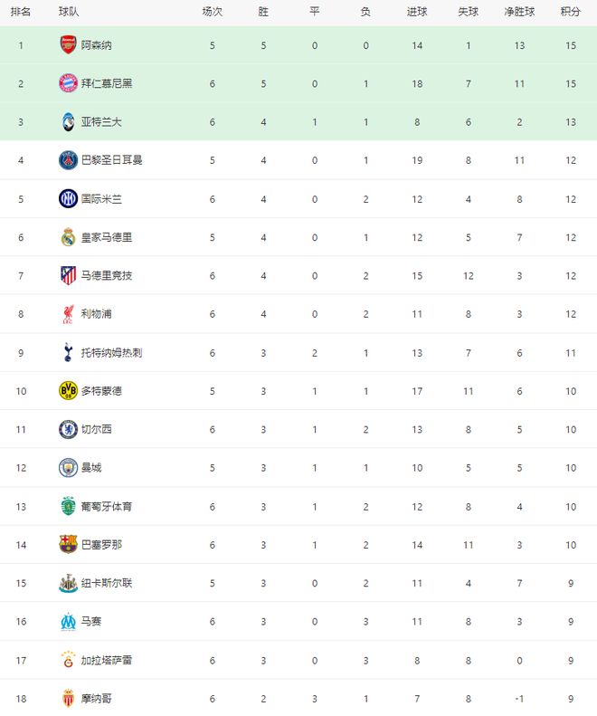 随着拜仁3-1,巴萨2-1,利物浦1-0绝杀国米,欧冠最新积分榜出炉