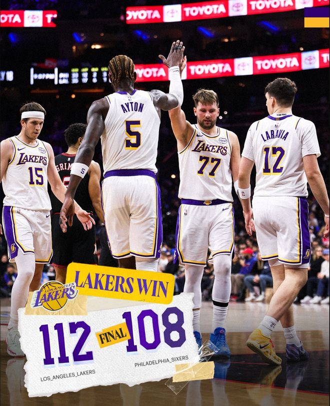 112-108!东契奇复出三双,詹姆斯29+7+6,湖人终结76人三连胜